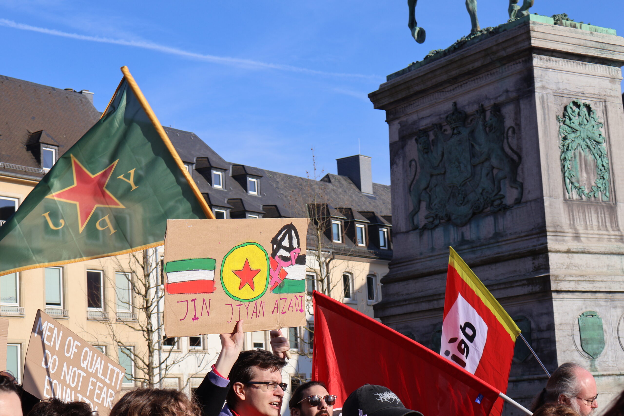 Our humanity has been under attack for years. There is an ongoing political project aiming to exclude us from participating in public life through sports and military bans, and even bathroom bills. Access to life-saving healthcare is being restricted, and the airwaves flooded with anti-”gender ideology” discourse. Bills are being introduced and laws changed in order to literally legislate us out of existence. For many younger members of our community, this is all they have ever known: to stand up and fight time and time again for their right to exist, to live, to thrive. To not rely on a state whose support is, at best, conditional, often requiring pathologization and subsequent treatment (through sterilization, normative (and mandatory) social and medical transitions, the cementing of binaries). Hence, we understand the fragility of our status as “citizens‘, or even as humans. The state can turn against even the most abiding of us at any point in time. Hence, the heightened importance of activist spaces and community solidarity—just as it is for so many other oppressed groups worldwide. So, let me ask again: How could we not stand for those locked in a struggle for their basic humanity? Bijî Rojava, free Palestine and trans liberation now! None of us will be truly free until all of us are!