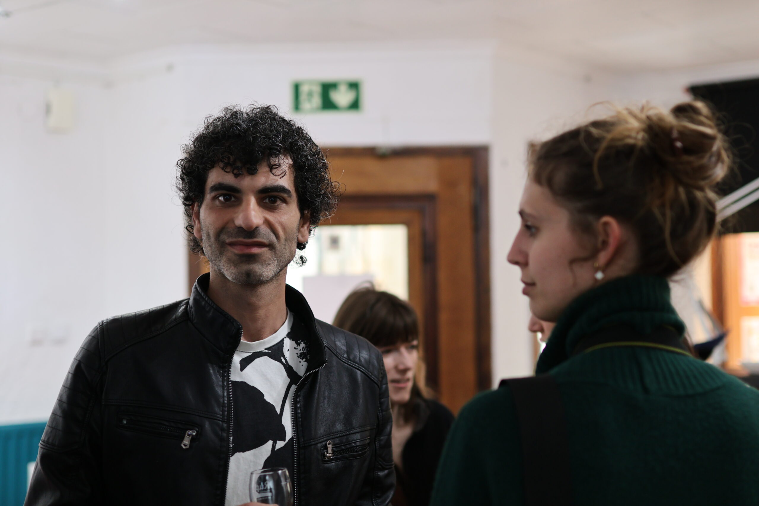 The opening of Sam Hrawy’s exhibition Motions of Silence, held on Friday, May 23, at the Rainbow Center Luxembourg, unfolded in hushed tones. The sound of gasps, scattered words, a rattling chair turned upside-down, scraping faintly against the linoleum floor, all echoed in the eerily quiet vestibule of the queer cultural center, as though trapped in a dance leading either deeper into the dark narrow corridor of the venue or out through the large glass windows where the fading light of the day was folding into evening.