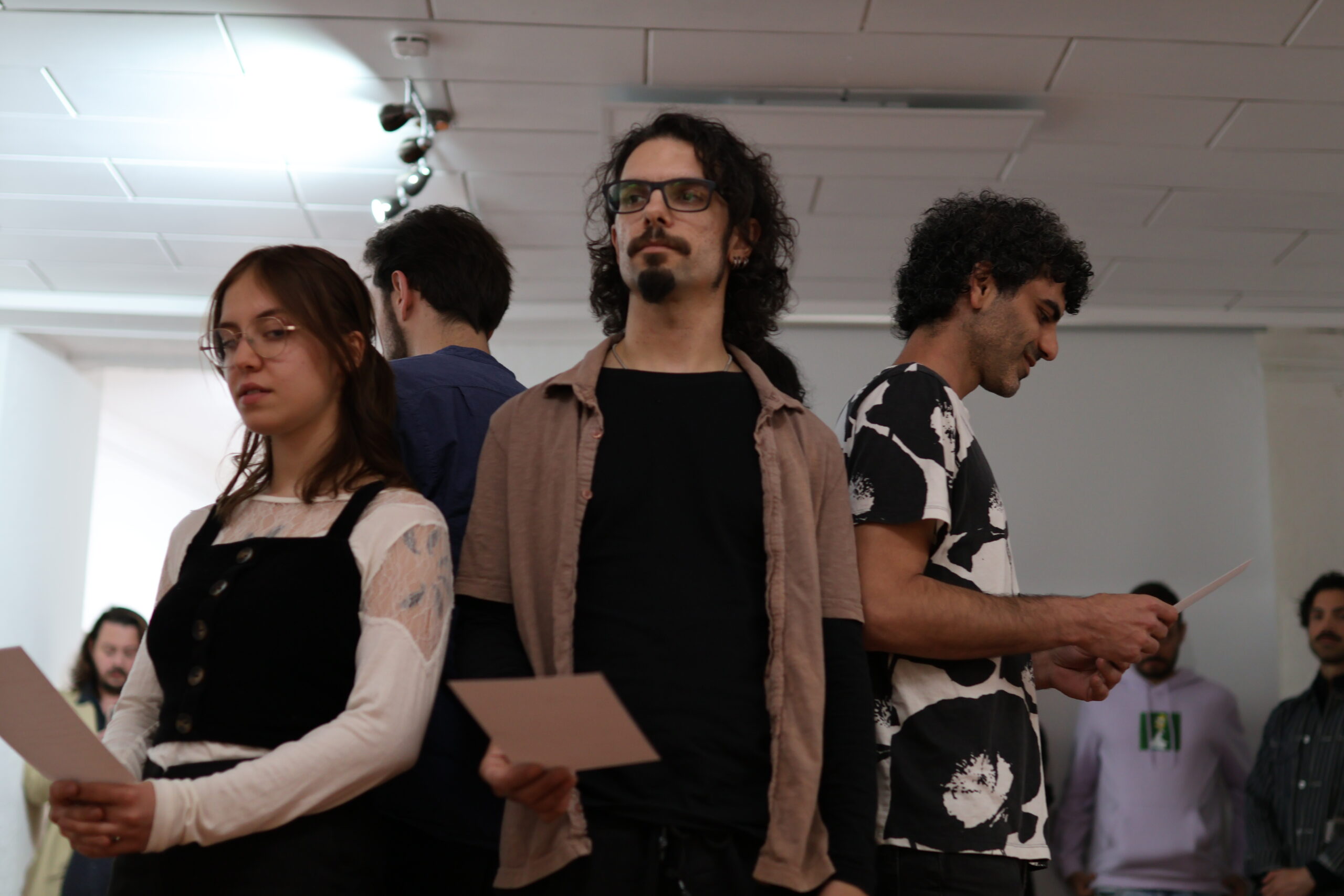 At the time, I was recovering from a knee surgery. My sick leave had been filled with soothing beverages and vertical readings until this evening of grand opening demanded something altogether different: a horizontal mental journey, seemingly gentle but tense, subtle but unsettling, with more questions than answers. In the compressed space of the Rainbow Center, silence was anything but quiet, it became a raucous reckoning, broken only by a couple of brief refreshments and cigarette breaks between the acts.