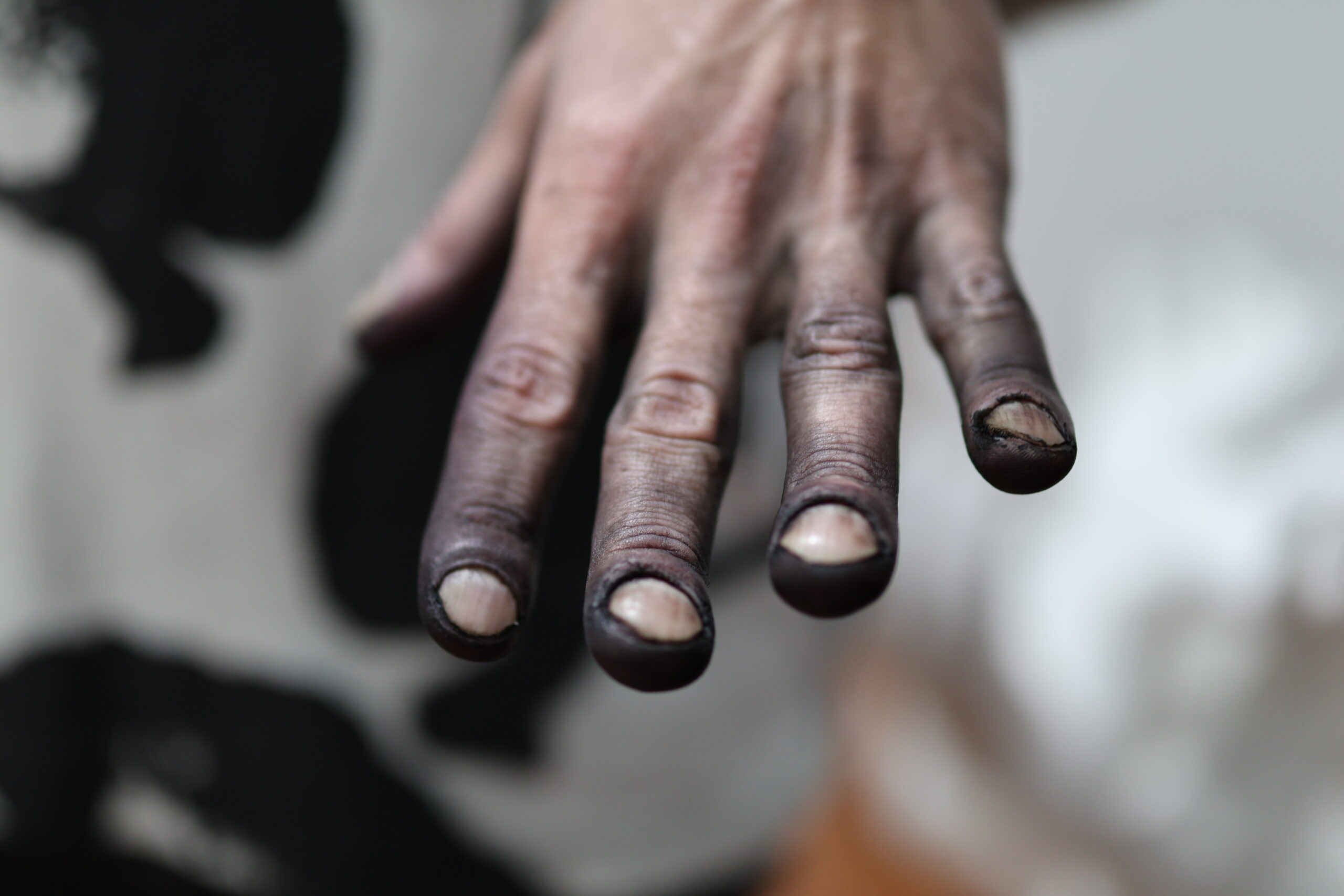 This is where silence becomes political. “I look at the world today, and it’s a place where… I wish I could intervene and change a few things”, Hrawy told me as he enthused over the need for healing and transformational change. He spoke with visible distaste of a world that has become increasingly transactional, shaped by the superficial, the performative, and he described his exhibition as an attempt to break the silence and expose the prevailing double standards. In the face of the ongoing atrocities, particularly the one unfolding in Gaza, Hrawy believes that silence, when deployed consciously, becomes a form of resistance. This tension finds shape in the performance titled Je vais être pulvérisé, created by artist Sébastien Faivre-Picon and performed in collaboration with artists Étienne Attal, Sébastien Faivre-Picon, Naomie Fassal, and Marine Lauer, of Laminal 4. Here, gasps and breath become “acts of defiance” against the dominant narrative that gags dissent. Gathered in a circle, their backs against each other, the artists deliver a choreography of interrupted sounds, unfinished words, and fractured movements that reveal their attempt to break their vulnerability.