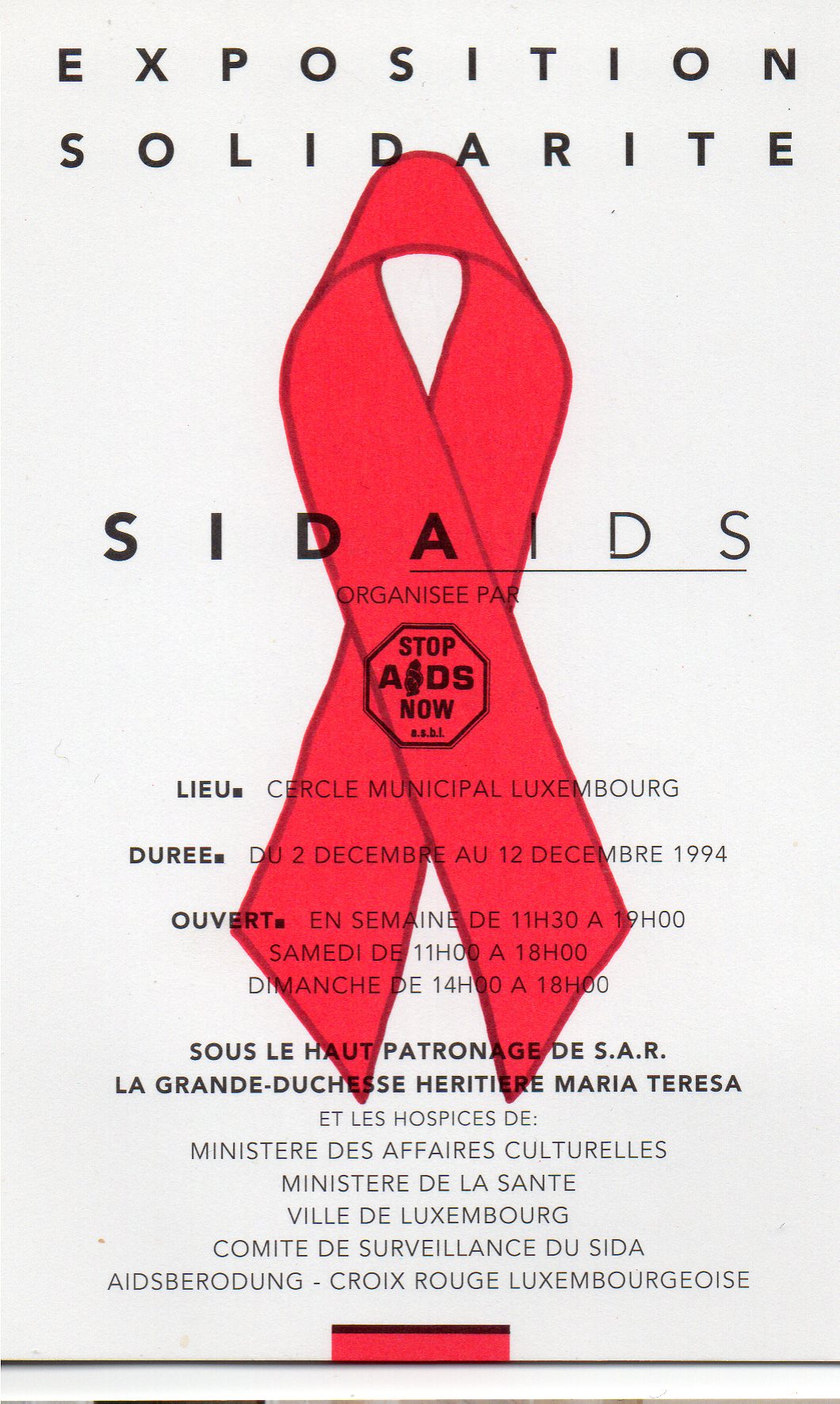 Henri überreicht uns ein paar Fotos, die im Dezember 1994 bei einer Ausstellung im Cercle Cité gemacht wurden. Diese Ausstellung unter dem Titel “Exposition Solidarité” war eine Kooperation von SAN und der Croix Rouge.